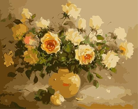 ABEUTY DIY Paint by Numbers for Adults Beginner - Yellow Roses 16x20 inches Number Painting Anti Stress Toys (Wooden Framed): Amazon.in: Home & Kitchen